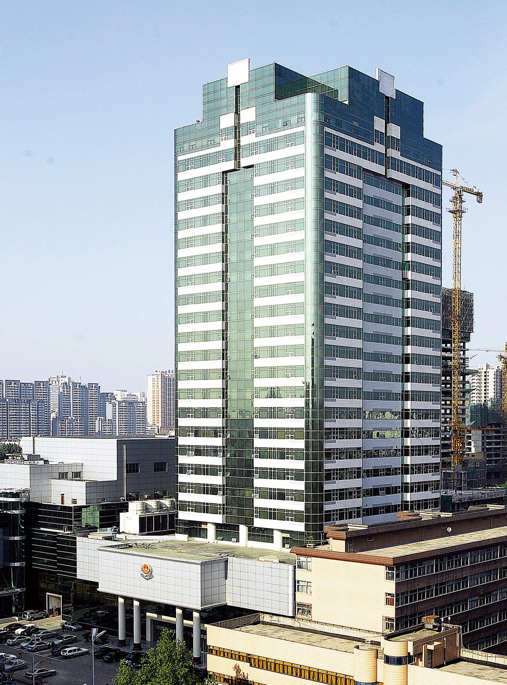 河北省國稅局陽光大廈工程坐落于石家莊市主干道平安南大街27號,是集辦公、培訓(xùn)、交流為一體的綜合性項目,工程地下2層,地上主樓26層裙樓3層,總建筑面積41327㎡,建筑層高建筑總高度108m。主體為現(xiàn)澆鋼筋混凝土框筒結(jié)構(gòu)體系,裙房為混凝土框架結(jié)構(gòu)。工程內(nèi)裝地面以磨光花崗巖、地面磚、木地板為主,室內(nèi)采用彩色噴涂和吊頂工藝,室外湖藍玻璃幕墻。該工程電氣、通訊、辦公、給排水、通風(fēng)空調(diào)、消防等功能齊全、先進。公司1997年5月?lián)⒐ぁ?br>