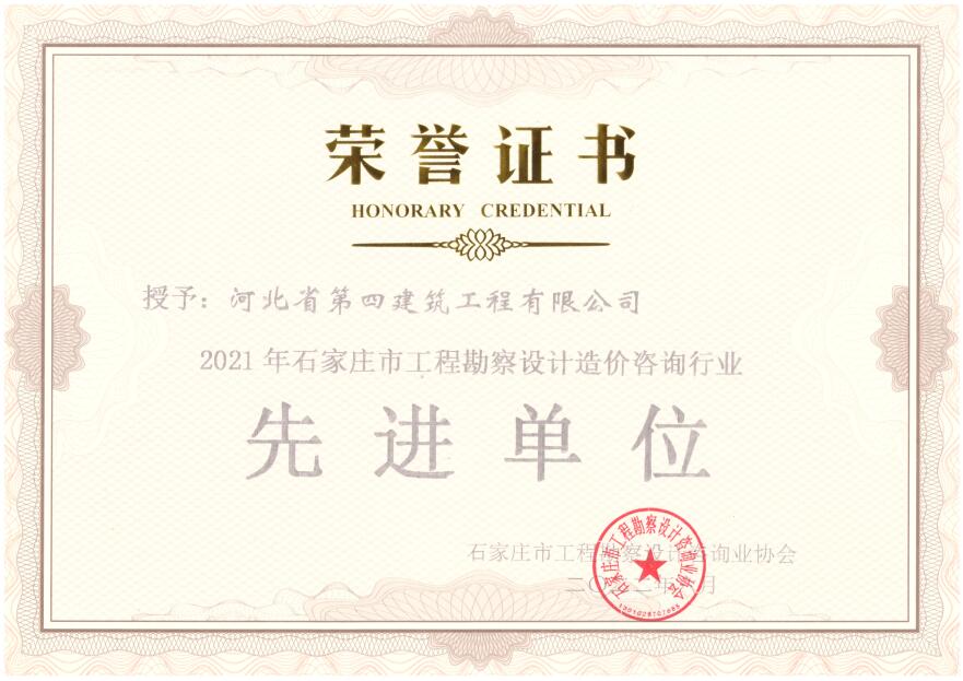 石家莊市工程勘察設(shè)計(jì)造價(jià)咨詢行業(yè)先進(jìn)單位