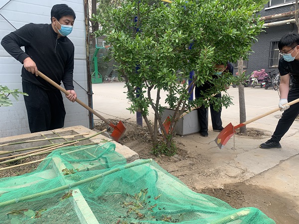 下午一點半,還沒到集合時間,黨員們已經(jīng)在辦公樓下領(lǐng)取工具,有序排隊,整裝待發(fā)。經(jīng)過分公司黨總支書記孫立鋒簡單的講話和小組分工后,大家各自拿著掃帚、鐵鍬等工具投入到負責的區(qū)域。首先大家對院內(nèi)路面、綠化帶、車棚、門廳、大門洞等區(qū)域進行了打掃和清理。勞動過程中,分公司班子成員分成四隊,孫立鋒帶頭負責打掃職工活動室周邊以及車棚的犄角旮旯,主任會計師孫春泉帶頭負責打掃辦公樓東側(cè)死角位置,開發(fā)副經(jīng)理高青帶頭打掃樓后狹窄過道,主任經(jīng)濟師孔艷艷帶頭擦拭門洞宣傳欄、清理花池中的枯枝、雜草。長期“飽經(jīng)風霜”的門洞宣傳欄一層塵土,孔艷艷全然不顧塵土飛揚,踩著凳子擦拭高處。在清理車棚衛(wèi)生時,為達到更好的清理效果,需要將每輛車移位,搬動電瓶車是個力氣活,開發(fā)科科長許茂茂帶頭,將電瓶車一一來個“平穩(wěn)大挪移”,清出垃圾后車輛重新擺放整齊。