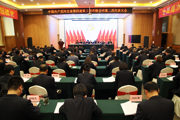 當日,中國共產(chǎn)黨河北省第四建筑工程有限公司第二次代表大會在石家莊市利淳商務(wù)酒店勝利召開。在預(yù)備會之后,大會在莊嚴的《國歌》聲中隆重開幕,96名黨員代表齊聚一堂,凝聚思想共識,共商黨建良策,共謀發(fā)展大計,共繪美好藍圖。集團公司黨委書記、董事長、總經(jīng)理張?zhí)炱缴W臨會議并講話,集團公司黨委辦公室主任、組織部部長張秋英、集團公司紀委副書記、紀委辦公室主任、監(jiān)督檢查室主任張煜出席大會并全程指導(dǎo)。會議先后由公司黨委副書記、總經(jīng)理唐志強,黨委副書記、紀委書記、工會主席李懷生主持。