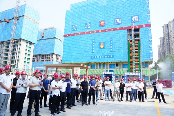 仲夏時(shí)節(jié),萬(wàn)物并秀。6月12日上午,二分公司西三教城中村改造回遷項(xiàng)目部,迎來(lái)了由河北建工集團(tuán)總工程師李占武帶隊(duì),各分公司生產(chǎn)經(jīng)理、安全科長(zhǎng)、項(xiàng)目經(jīng)理等組成的百人觀(guān)摩團(tuán)。本次觀(guān)摩全面展現(xiàn)了項(xiàng)目部在智慧賦能安全生產(chǎn)領(lǐng)域的深耕成果,一系列安全文明施工標(biāo)準(zhǔn)化做法和智能化設(shè)備的實(shí)際應(yīng)用成效,贏得了觀(guān)摩人員一致好評(píng)。