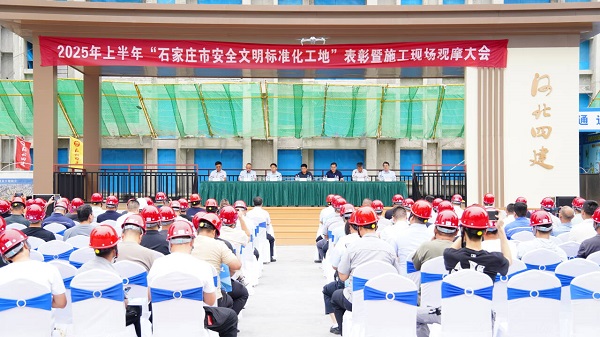6月26日,2025年上半年“石家莊市安全文明標(biāo)準(zhǔn)化工地”表彰暨施工現(xiàn)場(chǎng)觀摩大會(huì)在二分公司西三教城中村改造回遷項(xiàng)目舉行。石家莊市住房和城鄉(xiāng)建設(shè)局副局長(zhǎng)蘇西彥、河北省建筑業(yè)協(xié)會(huì)副會(huì)長(zhǎng)李同澤、石家莊市建筑協(xié)會(huì)執(zhí)行會(huì)長(zhǎng)王洪祥、石家莊市建筑協(xié)會(huì)安全專業(yè)委員會(huì)秘書長(zhǎng)劉振波、河北建工集團(tuán)安全管理部部長(zhǎng)柴竑、公司副總經(jīng)理劉金河,石家莊市住建集團(tuán)建筑工程有限公司安全主管、石家莊市建筑協(xié)會(huì)安全專業(yè)委員會(huì)副秘書長(zhǎng)王靜等領(lǐng)導(dǎo),以及來(lái)自全市建筑行業(yè)近200名同仁參與會(huì)議并觀摩。