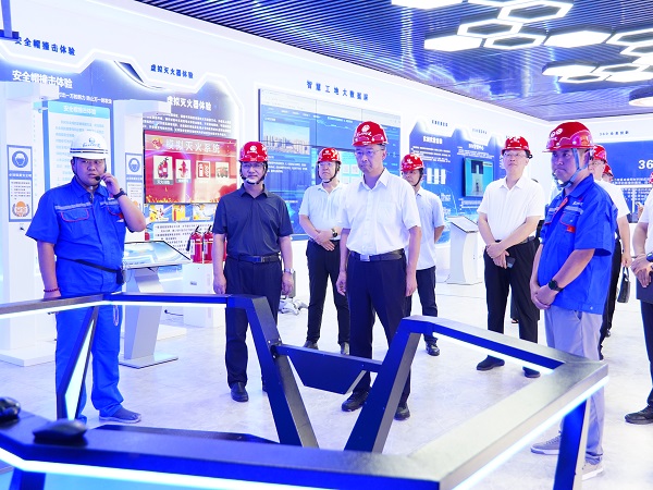 隨后,王現(xiàn)坤一行來到項目“智慧安全體驗中心”,聽取了項目的全息投影、BIM技術(shù)應(yīng)用、實測實量工具、智慧工地大數(shù)據(jù)平臺、智能巡檢機器人、虛擬滅火體驗等十余項智能化設(shè)施運用情況的介紹。王現(xiàn)坤特別對項目創(chuàng)新運用VR技術(shù)打造沉浸式安全教育模式的做法表示認可。他指出,安全是發(fā)展的基石,項目突破傳統(tǒng)培訓(xùn)的局限,以“身臨其境”式教育模式,增強了培訓(xùn)的吸引力和感染力,切實做到讓安全規(guī)范入腦入心,筑牢了安全生產(chǎn)防線。