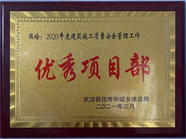 4月25日,武功縣住房和城鄉(xiāng)建設(shè)局表彰了2020年度建筑施工、房地產(chǎn)開發(fā)和物業(yè)管理工作先進集體和先進個人,四分公司陜西金沙河項目榮獲“2020年度建筑施工質(zhì)量安全管理工作優(yōu)秀項目部”稱號。