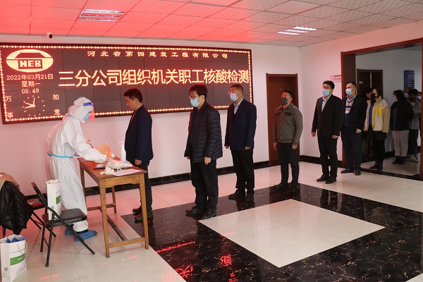 當(dāng)前,國(guó)內(nèi)疫情持續(xù)呈現(xiàn)多點(diǎn)散發(fā),局部出現(xiàn)聚集性疫情,疫情防控形勢(shì)十分嚴(yán)峻。為了保障職工身體健康,落實(shí)疫情防控工作,3月21日上午,三分公司組織機(jī)關(guān)60名職工,在機(jī)關(guān)一樓大廳進(jìn)行核酸檢測(cè)。