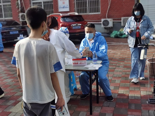 “沒(méi)問(wèn)題,馬上到”,孫志華一邊接電話,一邊穿衣服往外走。一路小跑很快來(lái)到小區(qū)核酸檢測(cè)點(diǎn),只見(jiàn)大家已經(jīng)有秩序地排成兩隊(duì),拉開(kāi)安全距離,耐心地等待著。