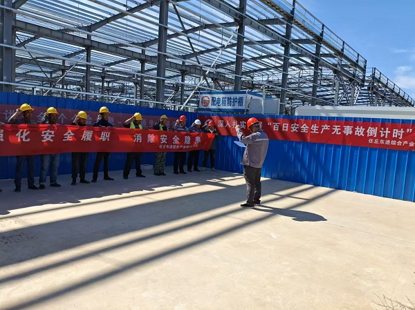 二分公司任丘東進綜合產(chǎn)業(yè)園項目正在進行鋼結(jié)構(gòu)吊裝工作,項目部在“百日安全生產(chǎn)無事故倒計時”活動中緊密結(jié)合吊裝施工特點、人員情況,進行針對性策劃,在“深”“?!薄皩崱鄙舷麓罅猓κ睾冒踩a(chǎn)防線。