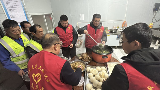 項目務(wù)工人員大多是當(dāng)?shù)卮迕?,離家較近的務(wù)工人員常自帶飯菜加熱食用。然而,天氣寒冷或加班時,飯菜容易變涼。考慮到這一點,項目部志愿者團(tuán)隊聯(lián)合食堂師傅,為工人們準(zhǔn)備了熱餐器具,并額外提供免費雞蛋湯,讓大家在繁忙的施工之余,感受到家一般的溫暖。這一舉措不僅讓工友們吃得安心、干得舒心,更激發(fā)了大家的工作熱情,為施工生產(chǎn)注入了強勁動力。