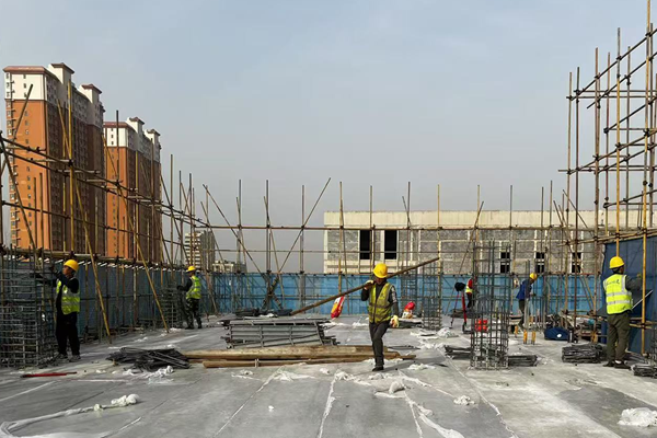 春日天氣漸暖,正是施工項目大干快干的黃金期。項目部搶抓有利時機,吹響“沖鋒號”,奮力沖刺首季目標任務。壓實工作責任,緊盯時間節(jié)點,全面梳理節(jié)點目標、精準倒排工期,優(yōu)化施工組織方案,增加鋼筋綁扎、模板支設等作業(yè)人員共計20余人,分工協(xié)作,全速推進項目進度。目前綜合教學樓已封頂,正在進行餐廳及多功能廳主體結(jié)構(gòu)施工。